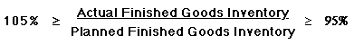 Inventory In addition, planned finished-goods inventory should be compared with actual levels. Deviations should be plus or minus five percent. The formula: